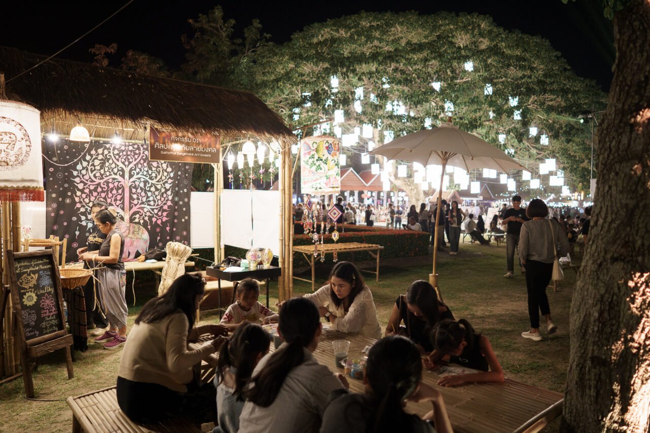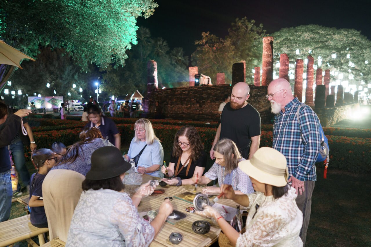 กิจกรรมสาธิตงานหัตถกรรม ศิลปะงาน Craft และกิจกรรม DIY ผลงานที่เป็นเอกลักษณ์ของชุมชนในจังหวัดสุโขทัย เช่น เครื่องปั้นดินเผาปัดเงิน ปัดทอง บ้านทุ่งหลวง การทำตะคัน วิถีชุมชนสำหรับใช้ในประเพณีลอยกระทง การทำข้อมือจากเหล็กน้ำพี้ การเพ้นท์โคม เพ้นท์พัด ลายเฉพาะของชาวสุโขทัย เป็นต้น ตลาดจำหน่ายสินค้าและอาหารพื้นเมือง เมนูหาทานยาก ของดีประจำถิ่น และลิ้มรสอาหารไทย หลากหลายเมนูที่คัดสรรมาอย่างพิถีพิถันภายในงาน อาทิ ข้าวเปิ๊บ บ้านนาต้นจั่น ขนมข้าวปุกงา