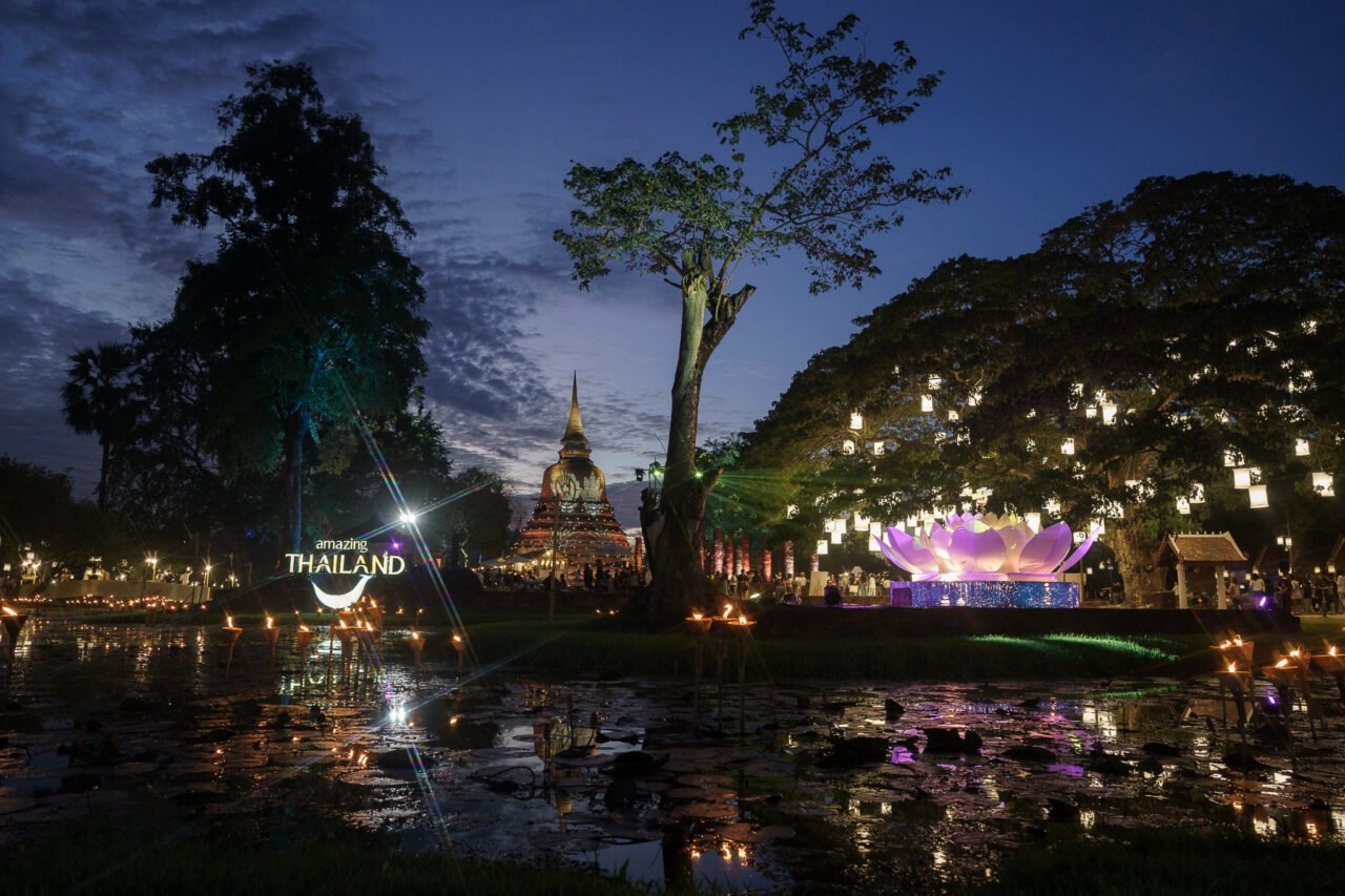 งาน Maha Loy Krathong @ Sukhothai กำหนดจัดงาน 27 ตุลาคม-5 พฤศจิกายน 2568 ณ วัดชนะสงคราม อุทยานประวัติศาสตร์สุโขทัย จังหวัดสุโขทัย ยังคงจัดงานตามกำหนดเดิม โดย ททท. ร่วมกับจังหวัดสุโขทัยจัดงานประเพณีลอยกระทง เผาเทียน เล่นไฟ จังหวัดสุโขทัย ประจำปี 2568 โดยโซนของ ททท. จัดขึ้นบริเวณวัดชนะสงคราม ในแนวคิดหลักมหาลอยกระทง MAHA LOI KRATHONG @ Sukhothai กิจกรรมภายในงาน ประกอบด้วย การตกแต่งเสริมสร้างบรรยากาศประดับไฟอย่างสวยงามตระการตาเข้ากับบรรยากาศย้อนยุคผสมผสานวัฒนธรรมวิถีชีวิต และความรุ่งเรืองของวัฒนธรรม